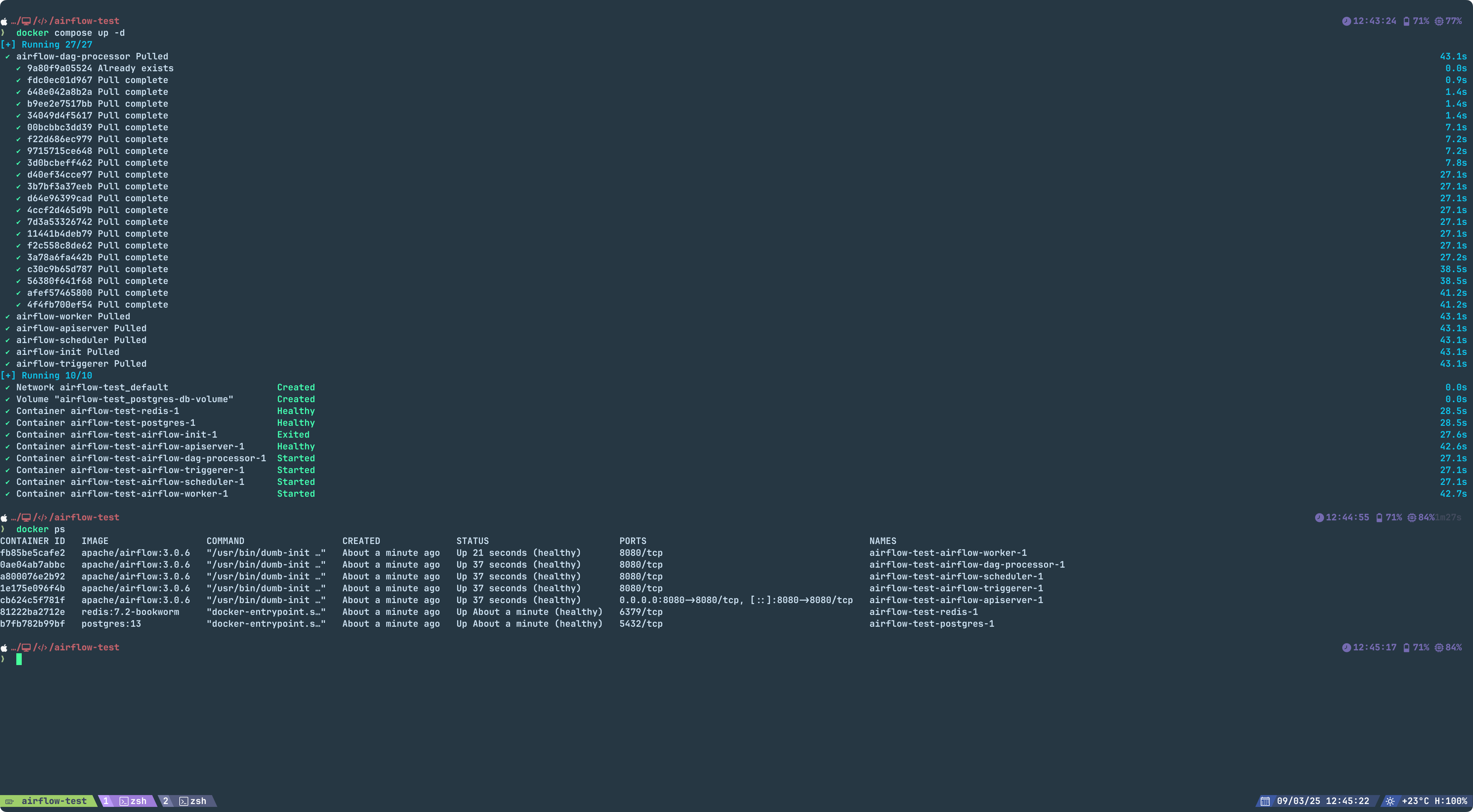 다음과 같이 모든 서비스가 ‘healthy’ 상태가 되면 정상적으로 동작한 것이다