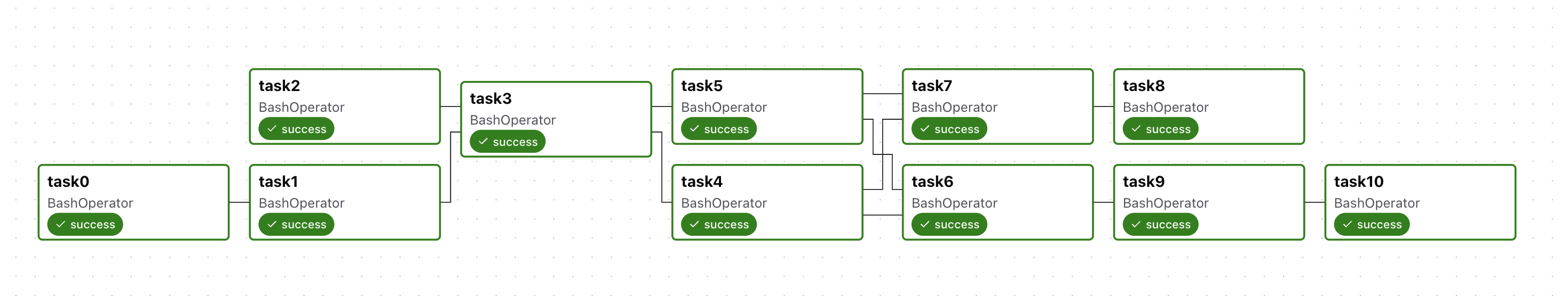from airflow.sdk import chain chain(task1, task2, task3, task4) # ๊ฒฐ๊ณผ # task1 >> task2 >> task3 >> task4