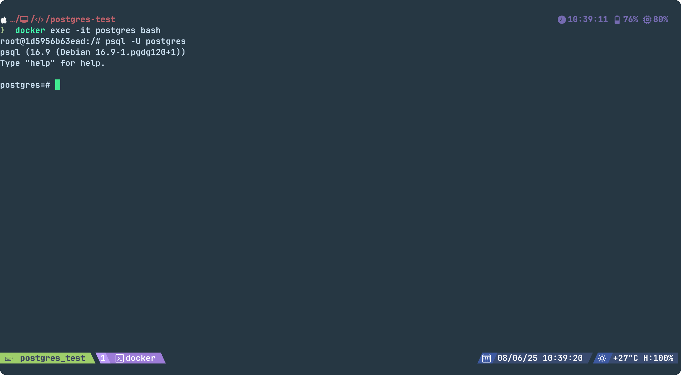 이제 PostgreSQL 서버에 접속해 SQL을 실행하거나 관리 작업을 수행하는 CLI 클라이언트인 psql 명령어로 database에 접속해보자
