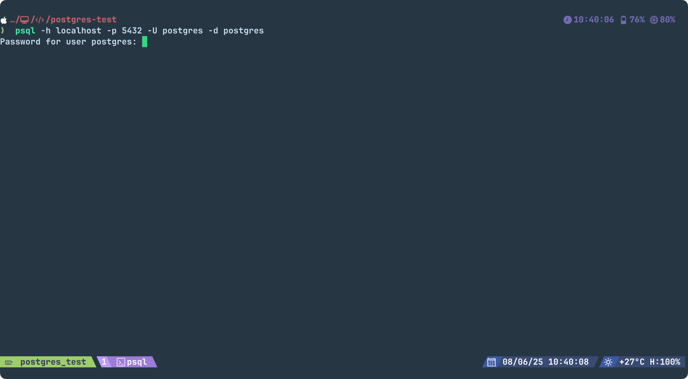 하지만 컨테이너 안에서 psql -U postgres를 하게 되면 내부적으로 알아서 password를 입력하지 않아도 접속이 가능하며, 컨테이너 바깥에서 접속할 때 비밀번호를 입력해야한다.