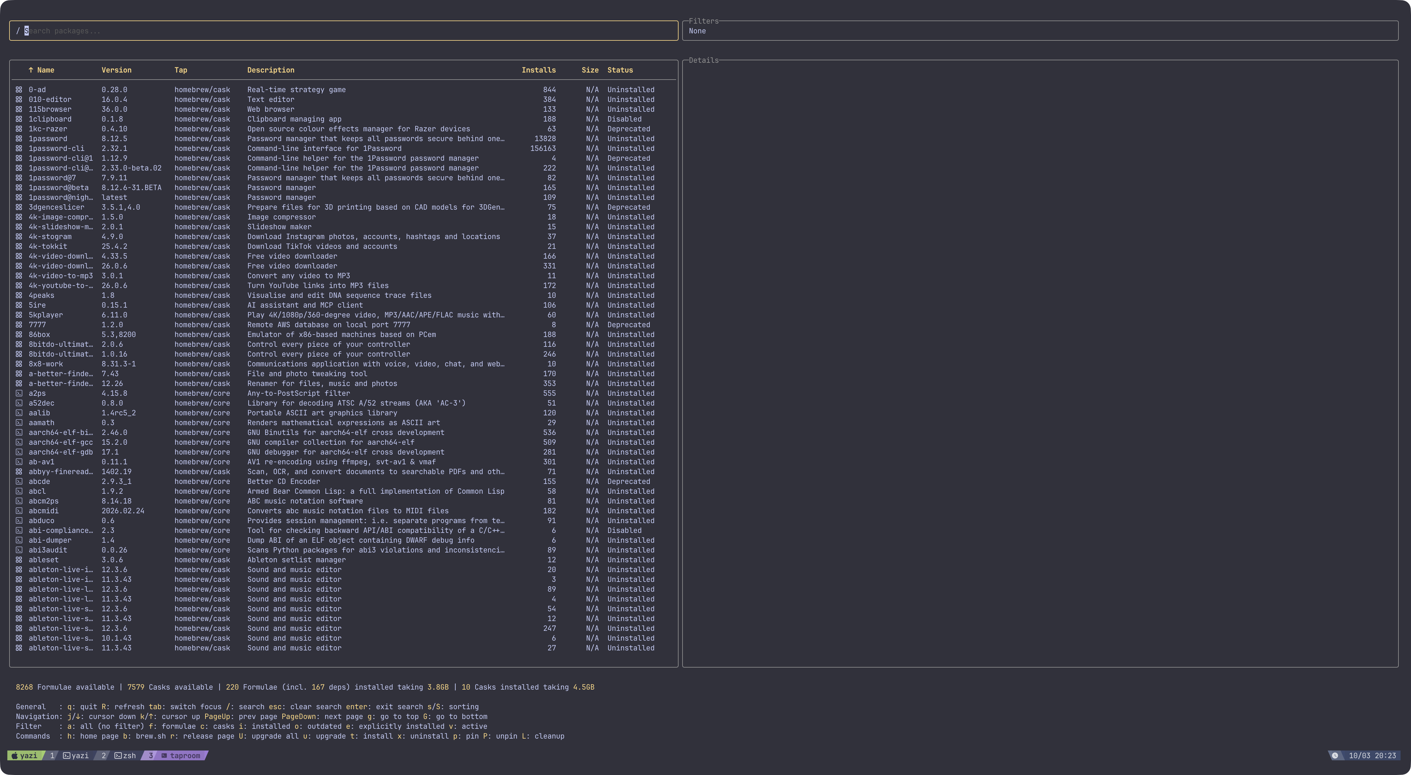 taproom : cozy terminal user interface (TUI) for Homebrew