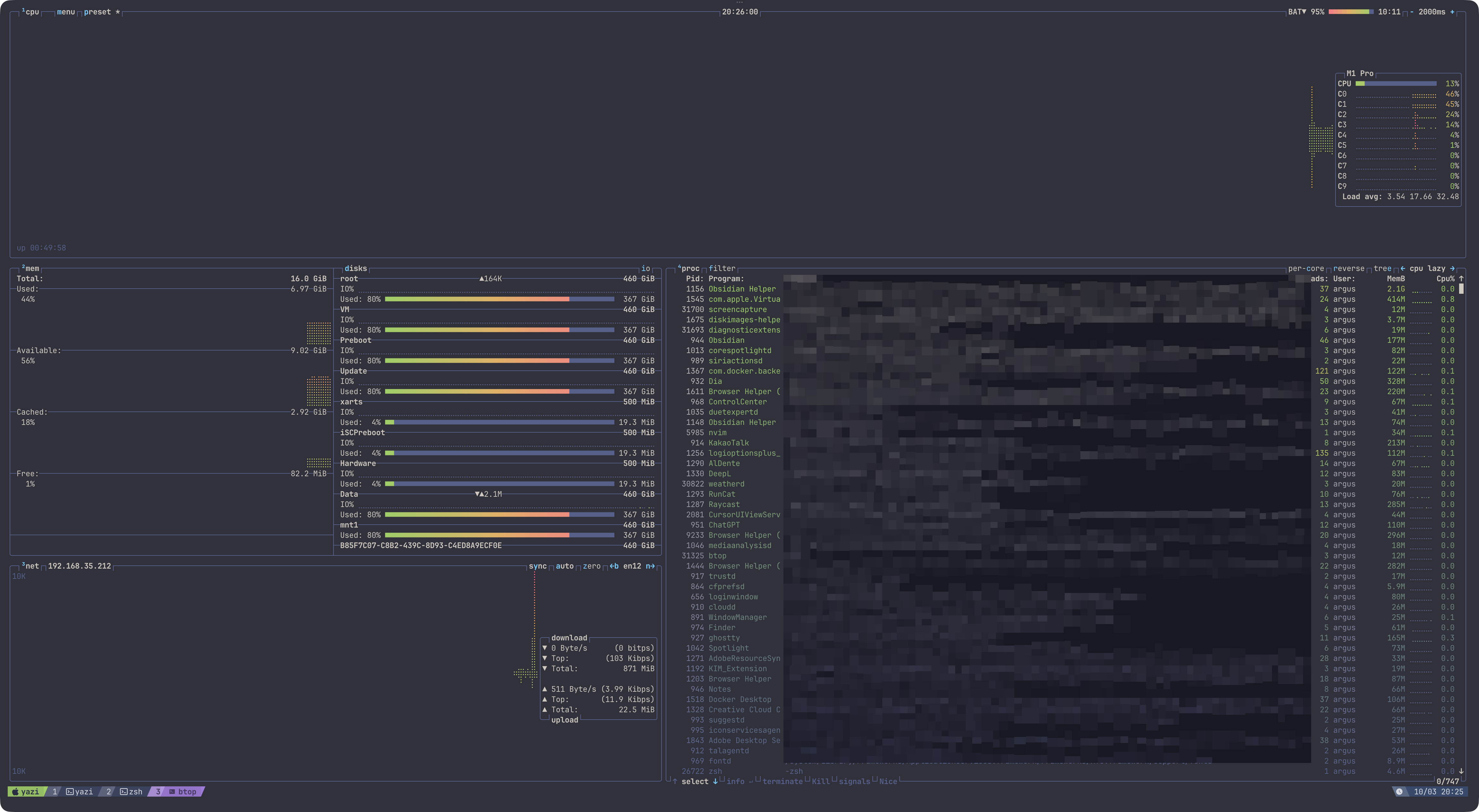 btopSystem MonitorCPU, 메모리, 디스크, 네트워크, 프로세스를 보기 좋게 보여주는 리소스 모니터