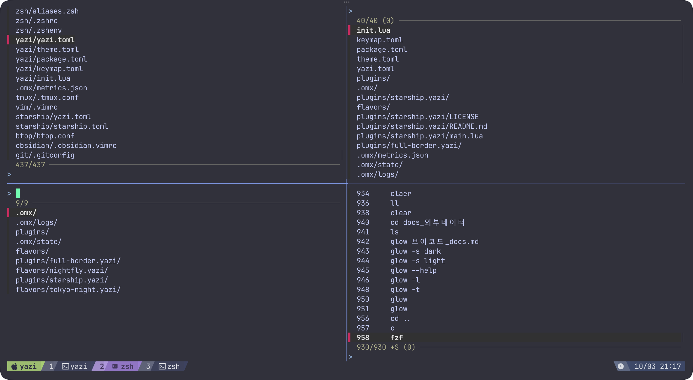 1. 좌측 상단부터 시계방향으로 fzf / ctrl+t / ctrl+r / esc+c
