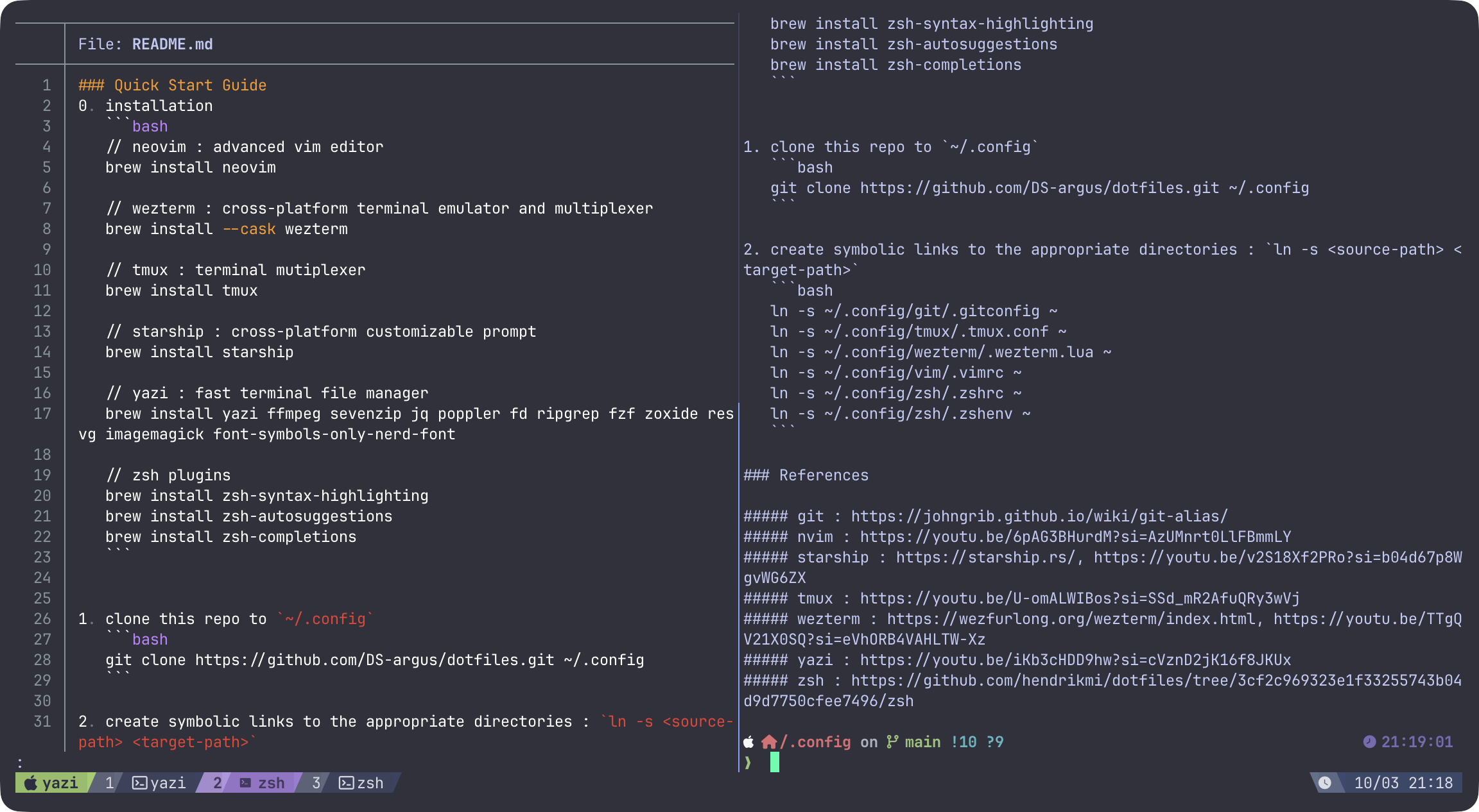 brew install yazi ffmpeg-full sevenzip jq poppler fd ripgrep fzf zoxide resvg imagemagick-full font-symbols-only-nerd-font