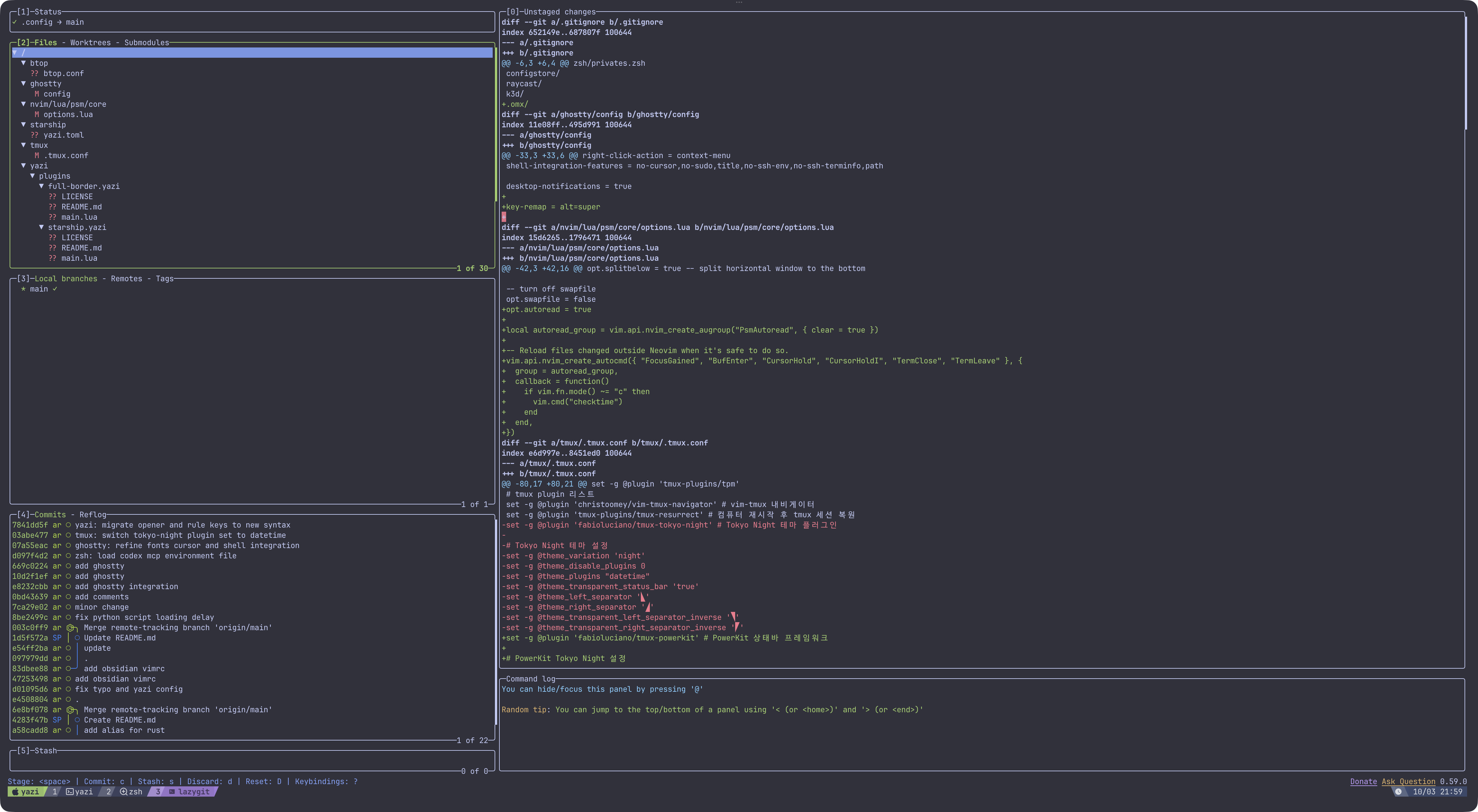 이 글에서는 내가 실제로 쓰는 터미널 에뮬레이터, 셸 보조 도구, TUI 유틸리티, 그리고 작업 흐름을 정리해본다.